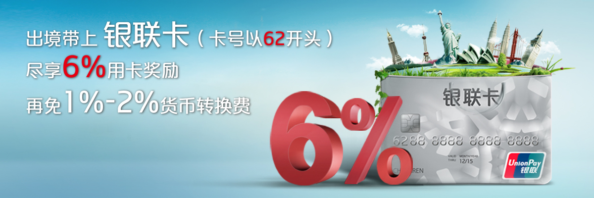 参加国旅、中旅、中青旅出境游且刷62银联卡,享高达6%境外用卡奖励